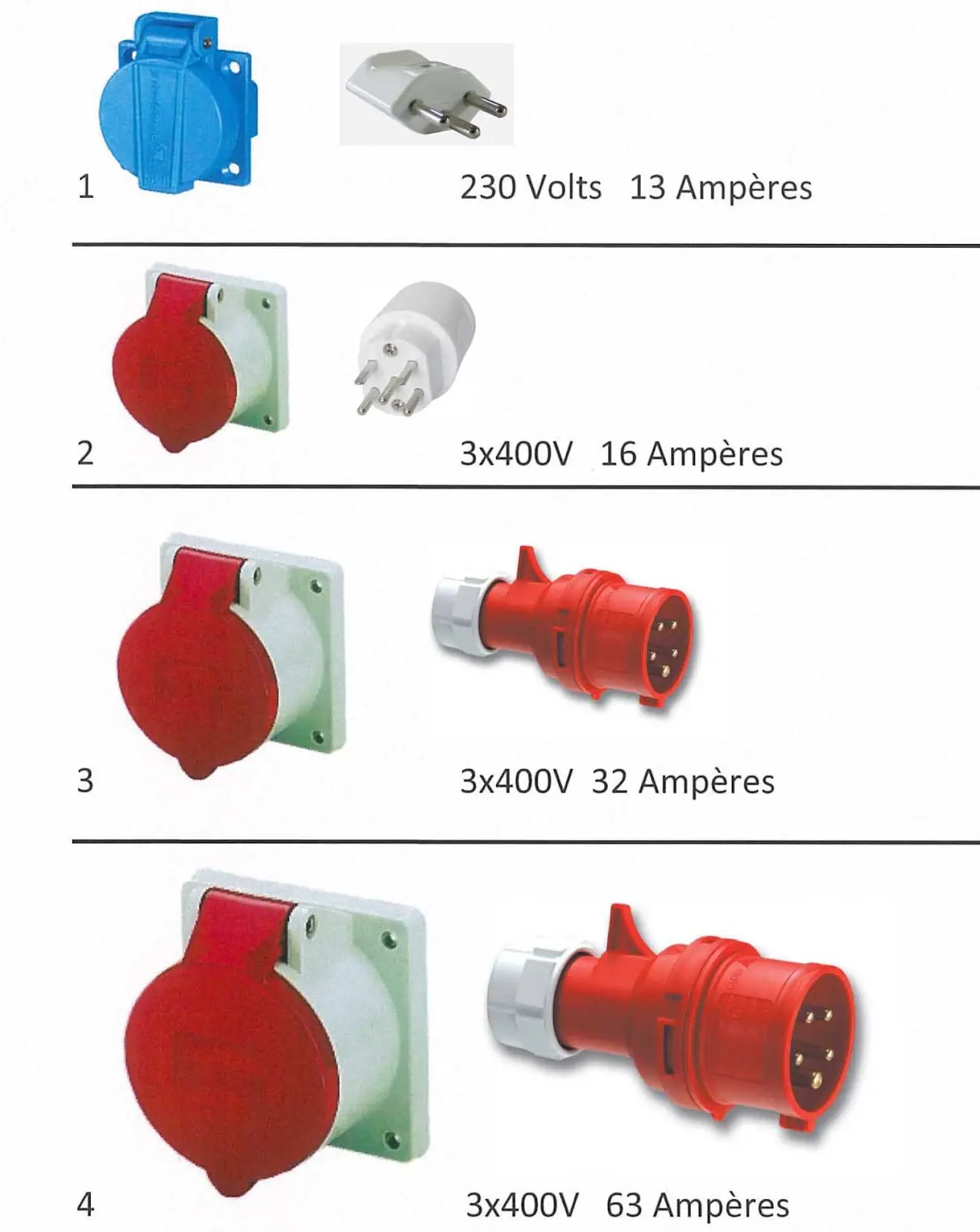 - Veuillez prendre note que des rallonges de minimum 50 mètres et les adaptateurs adéquats doivent être prévus par vos soins (matériel non fourni sur place).